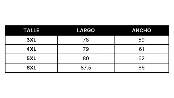 Talles disponibles: 3XL, 4XL, 5XL y 6XL